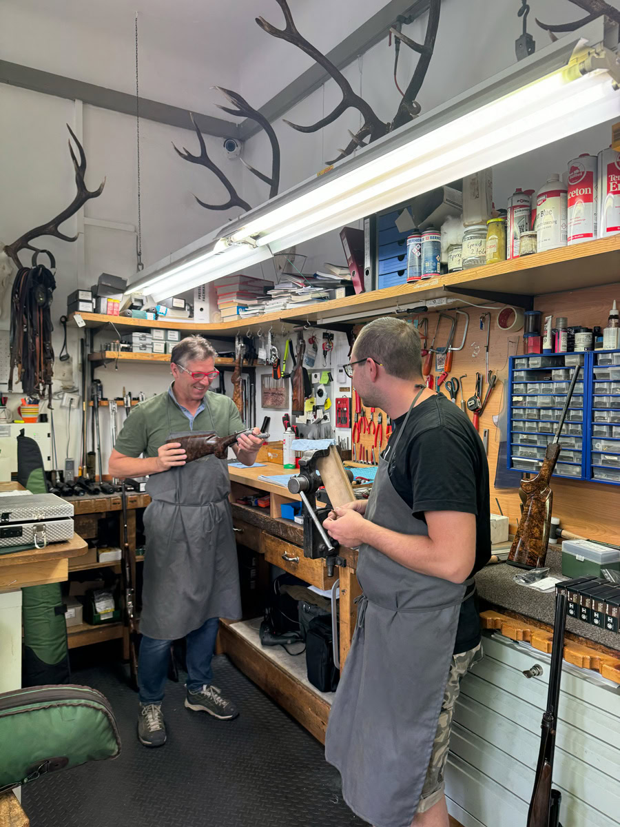 Die Menschen im Scheiring Team leben und arbeiten nicht nur zusammen, sondern teilen auch die Leidenschaft fürs Jagen. Die enge Zusammenarbeit im Familienbetrieb stellt jedoch auch Herausforderungen dar – insbesondere wenn es darum geht, neue Mitarbeiter zu finden, die mit der gleichen Hingabe und Liebe zum Detail arbeiten wie die langjährigen Mitarbeiter selbst. Aber der Nachwuchs findet sich – insbesondere in solch handwerklichen Berufen – leider generell schwierig heutzutage.